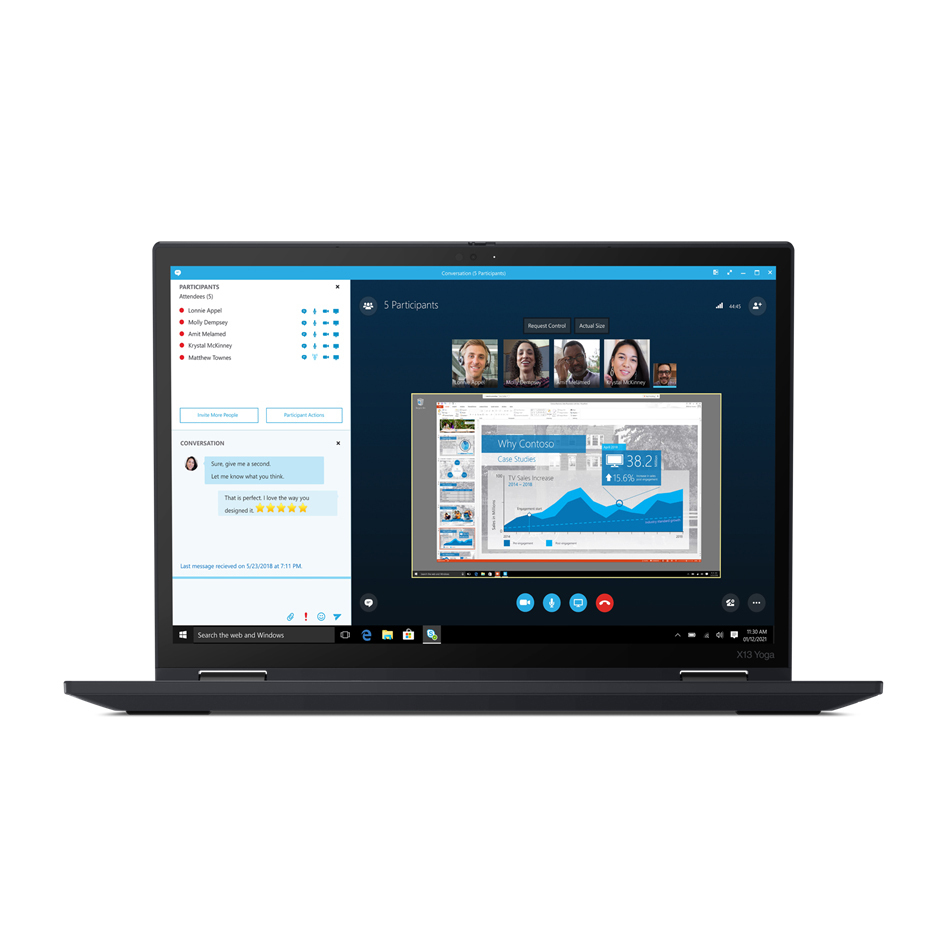 | Mit der integrierten Webcam im Lenovo ThinkPad X13 Yoga (2ND GEN) bleiben Sie in Kontakt mit Ihren Freunden. Egal, wo sie sich grade auf der Welt aufhalten. Solange ein Internetanschluss verfügbar ist, können Sie mit Ihren Lieben daheim per Videotelefonie (z.B. mit Skype) sprechen. | |